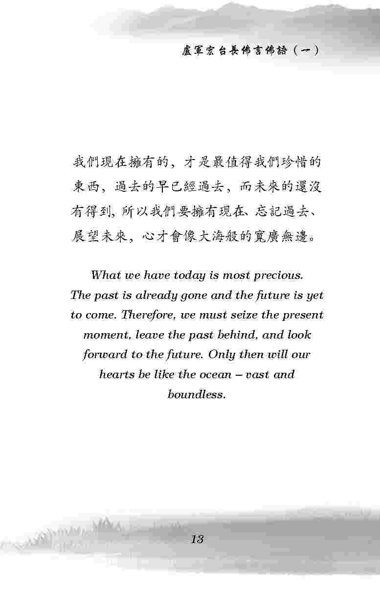 所以我們要擁有現在、忘記過去、展望未來,心才會像大海般的寬廣無邊。